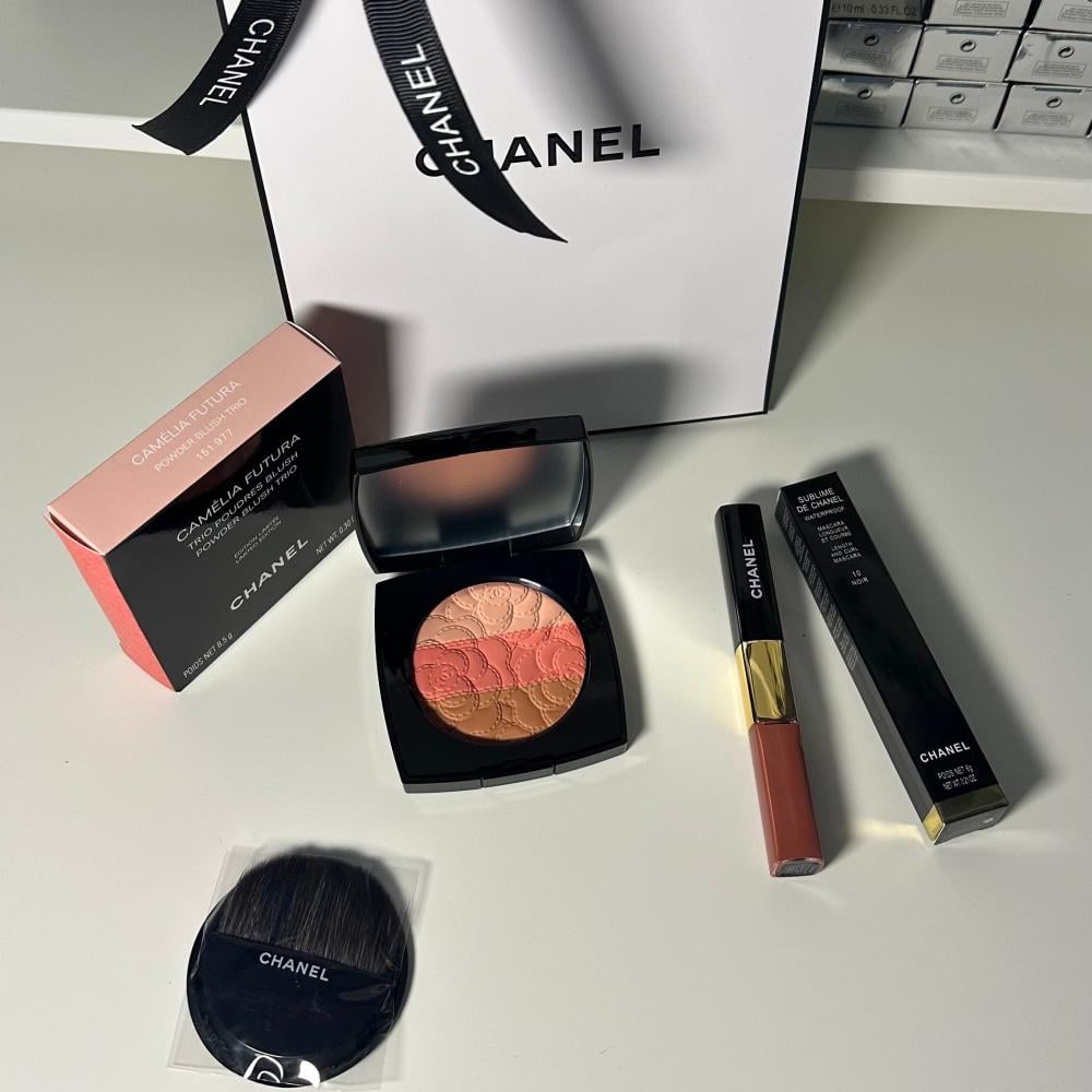 يضم بلاشر ثلاثي الألوان يمنحك إشراقة طبيعية ومتدرجة، مع روج وقلوس يضيفان لمسة من الجاذبية والأنوثة، داخل كيس أنيق مزين بشريطة فخمة يعكس فخامة العلامة الفرنسية شانيل.